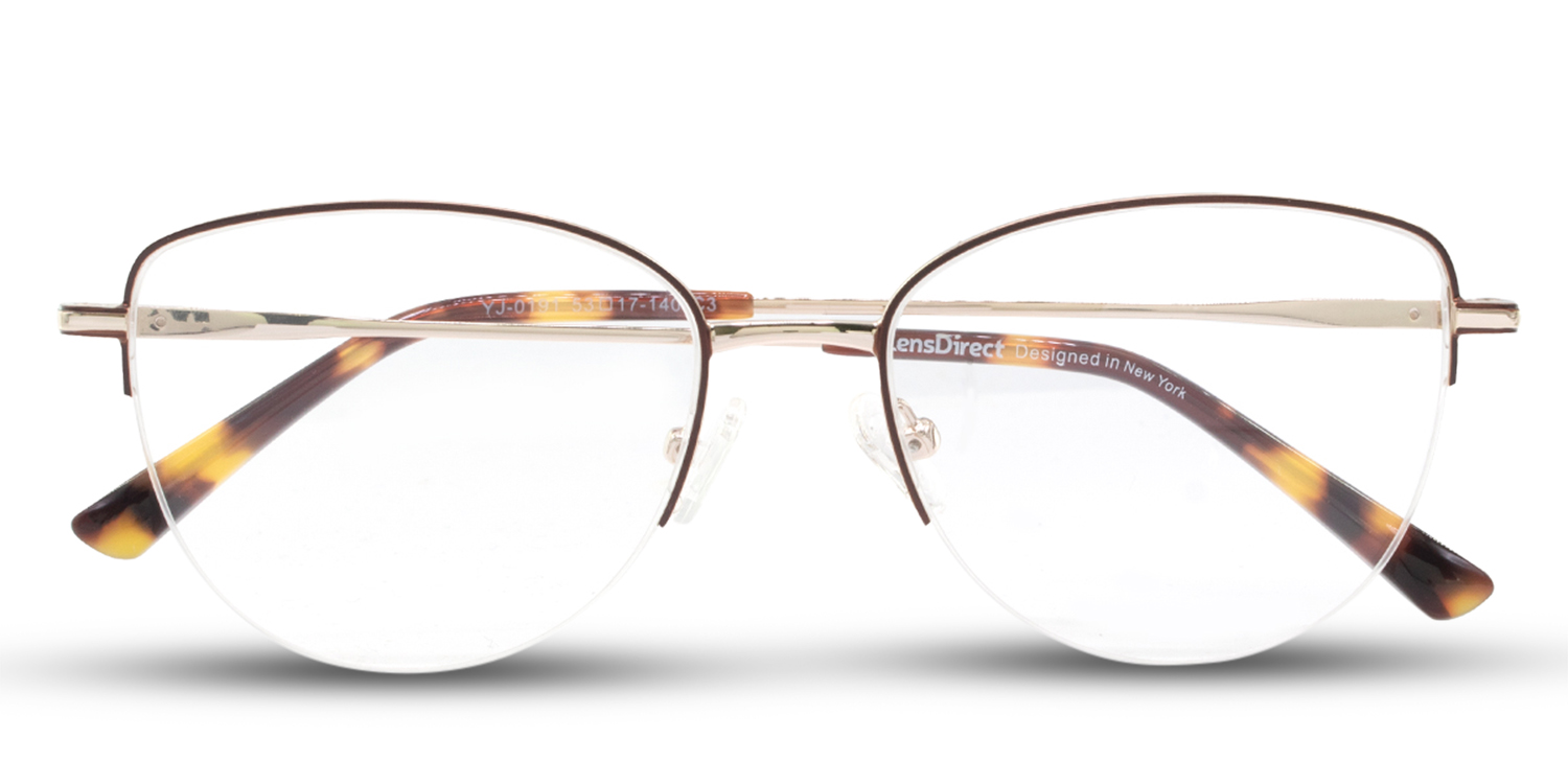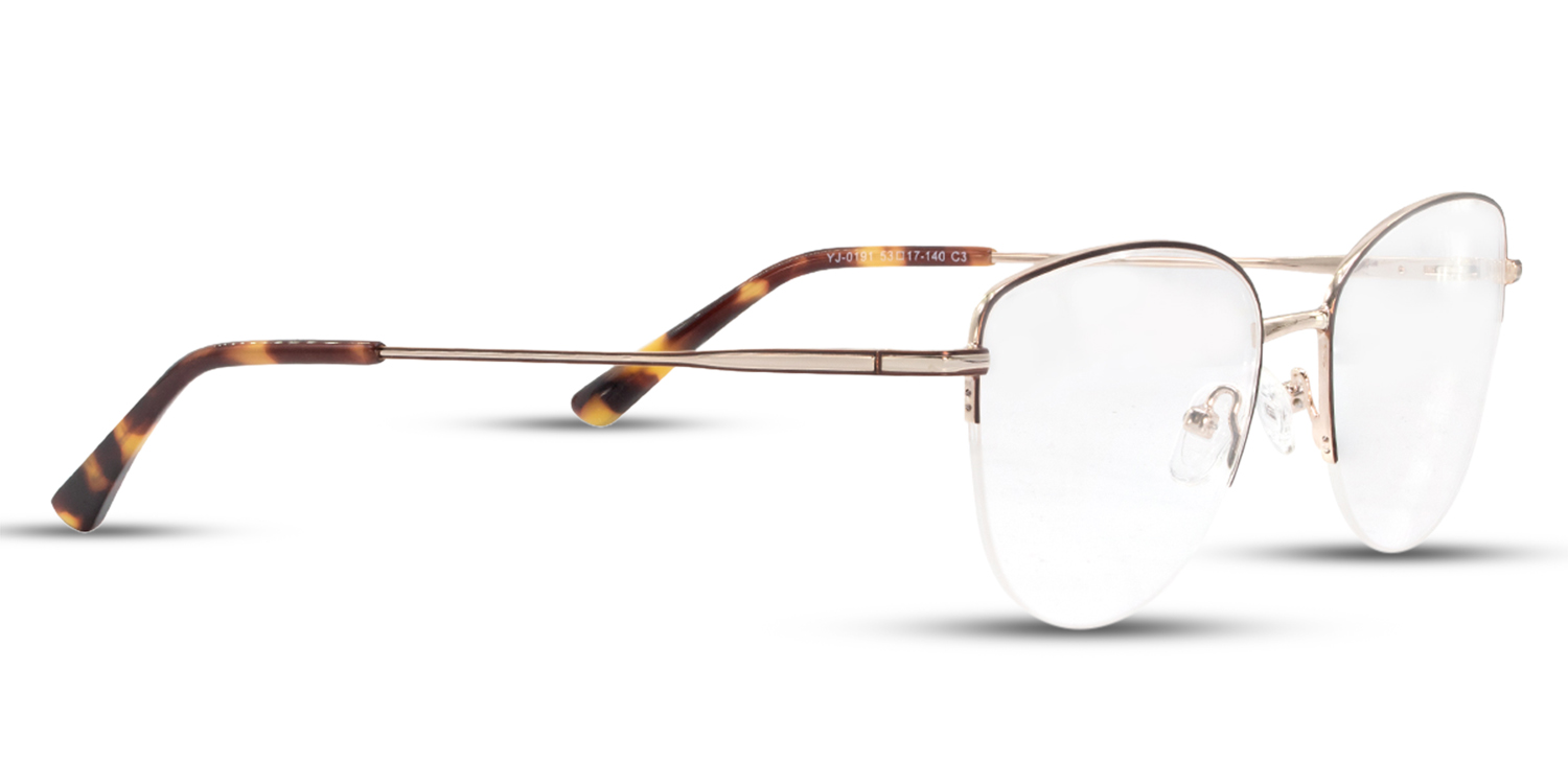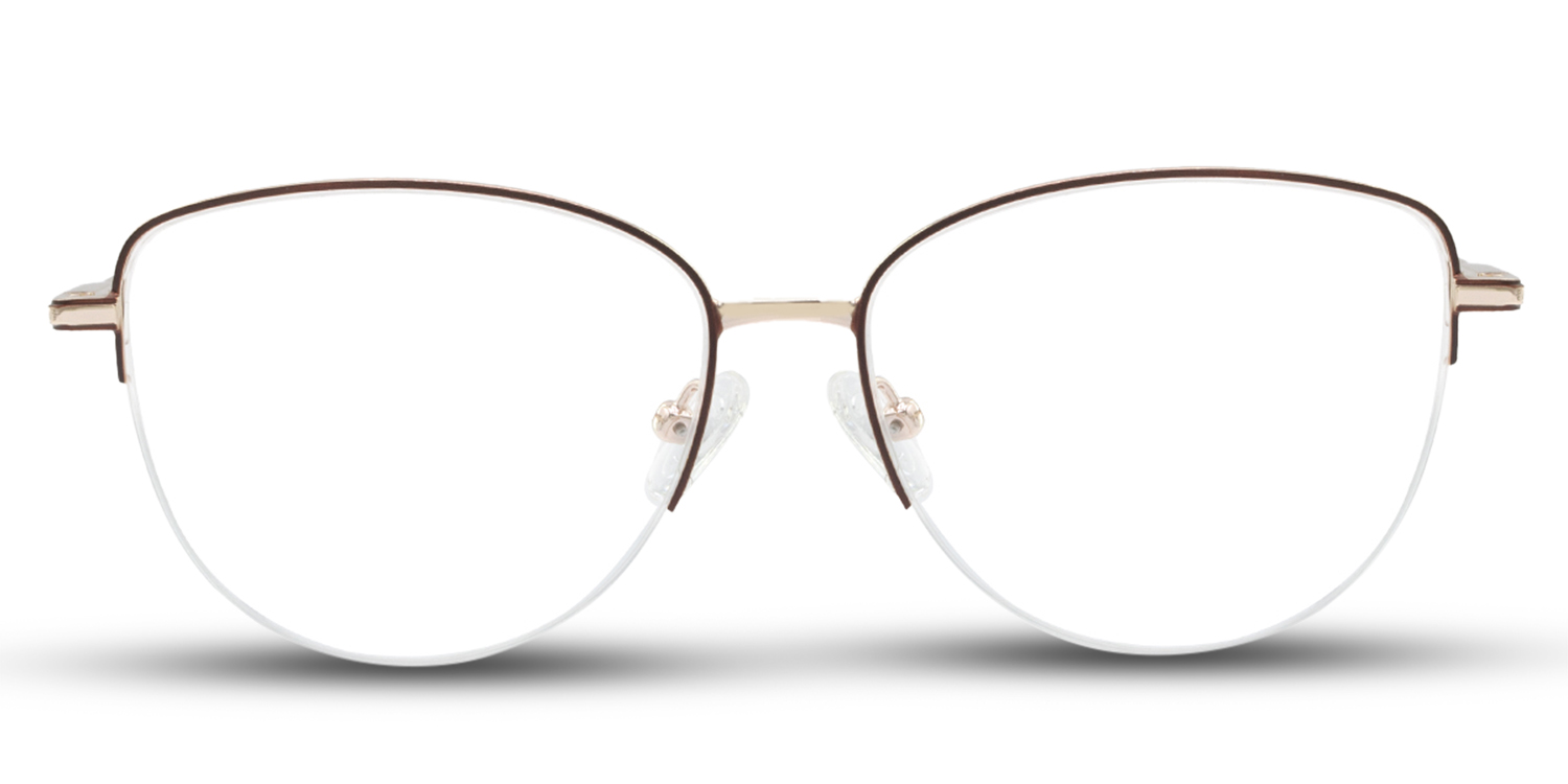 The Sarai is a modern feminine metal rounded cat-eye glasses frame with a sleek and sophisticated design. The frame is made of high-quality metal and features a rounded cat-eye shape with a slightly upswept browline. The lenses are semi-rimless, and the temples are made of thin metal.